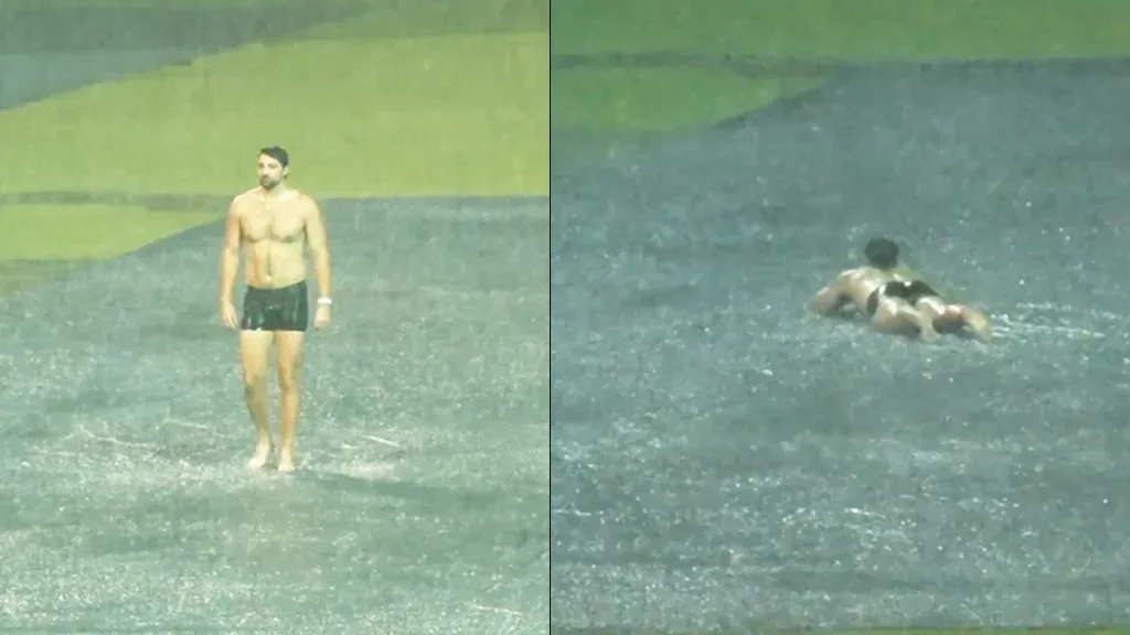 IPL 2025: भारी बारिश के बीच एम चिन्नास्वामी स्टेडियम में टिम डेविड ने की तैराकी