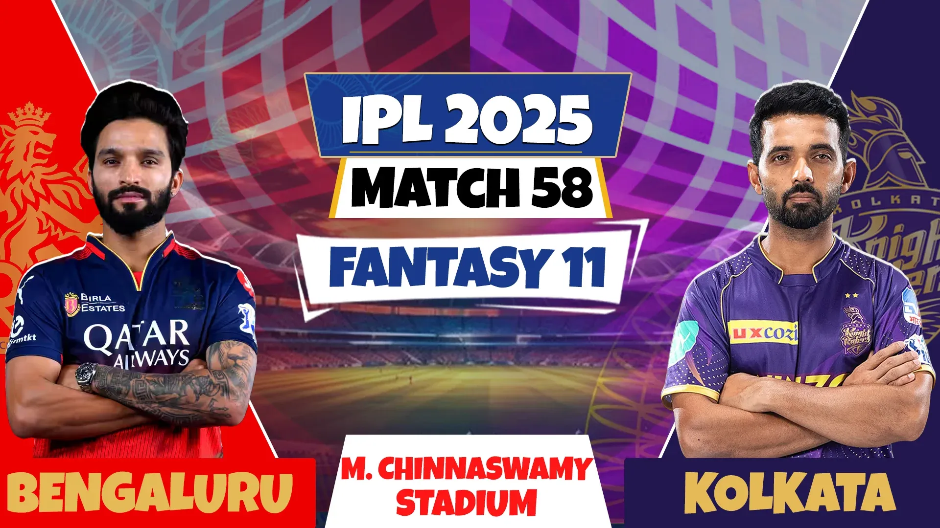RCB vs KKR | Match Prediction | IPL 2025 Match – 58 | Fantasy XI | Pitch Report