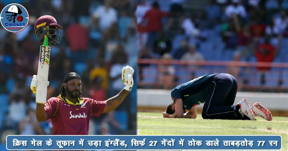 बीते दिन इंग्लैंड की टीम ने क्रिस गेल का जो तूफ़ान देखा वो हमेशा याद किया जायेगा जिन्होंने महज़ 27 गेंदों में ताबड़तोड़ 77 रन ठोक डाले।