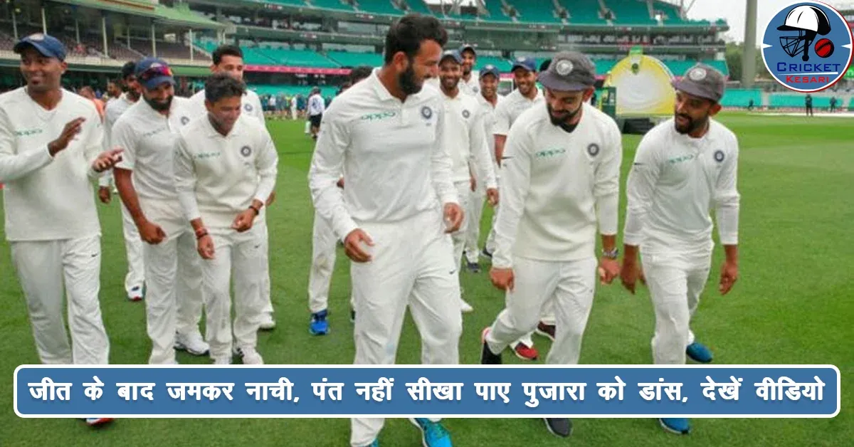 भारतीय टीम जीत के बाद जमकर नाची, पंत नहीं सीखा पाए पुजारा को डांस, देखें वीडियो