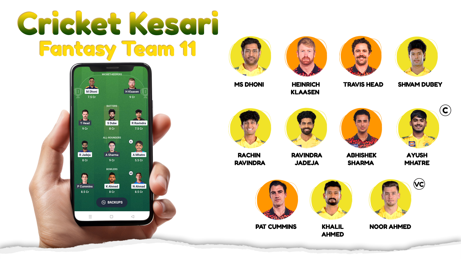 एमएस धोनी, हेनरिक क्लासेन, ट्रैविस हेड, शिवम दुबे, रवींद्र जड़ेजा, रचिन रवींद्र, अभिषेक शर्मा, आयुष म्हात्रे, पैट कमिंस, खलील अहमद, नूर अहमद,