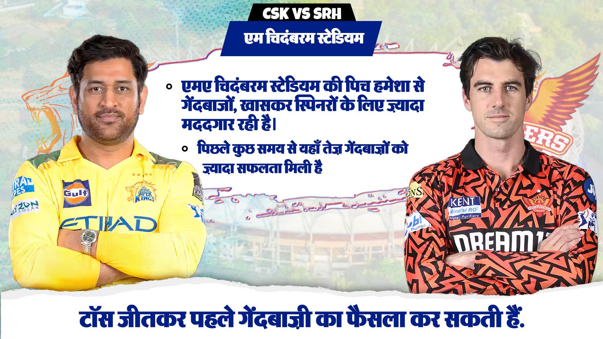 चेन्नई सुपर किंग्स (सीएसके) आईपीएल 2025 के 43वें मैच में 25 अप्रैल को एमए चिदंबरम स्टेडियम, चेन्नई में सनराइजर्स हैदराबाद (एसआरएच) से भिड़ेगी। सीएसके और एसआरएच अंक तालिका में सबसे नीचे हैं और लीग में अपने सबसे खराब सीजन में से एक खेल रहे हैं। पांच बार की चैंपियन सीएसके ने लगातार पांच मैच गंवाए हैं और ऐसा लगता है कि रुतुराज गायकवाड़ के चोटिल होने के बाद एमएस धोनी की कप्तानी में वापसी के बावजूद उनका आत्मविश्वास खत्म हो गया है। उनके पास अभी भी छह गेम बचे हैं, लेकिन एसआरएच के खिलाफ आगामी मैच सहित हर मुकाबला उनके लिए करो या मरो का मामला है क्योंकि उनके पास अभी केवल चार अंक हैं।