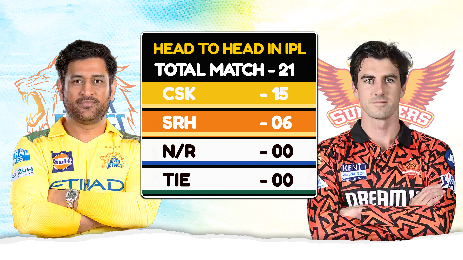 सीएसके और एसआरएच ने अब तक एक दूसरे के खिलाफ 21 मैच खेले हैं, जिसमें सीएसके ने 15 और हैदराबाद में 6 जीते हैं।