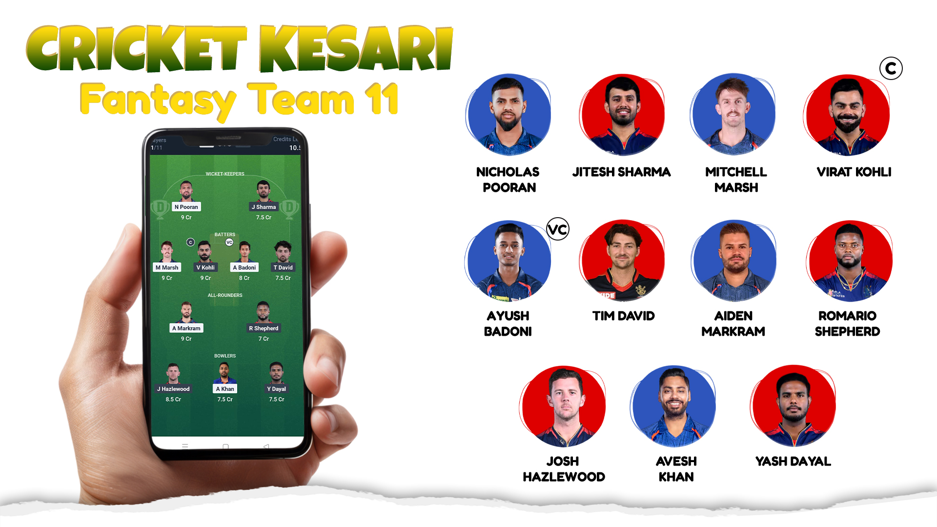 निकोलस पूरन, जितेश शर्मा, मिशेल मार्श, विराट कोहली, आयुष बडोनी, टिम डेविड, एडेन मार्करम, रोमारियो शेफर्ड, जोश हेज़लवुड, अवेश खान, यश दयाल