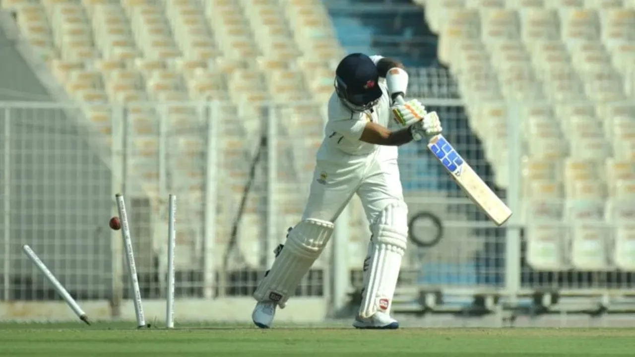 रणजी ट्रॉफी में सुमित कुमार की गेंद पर बोल्ड हुए सूर्यकुमार यादव