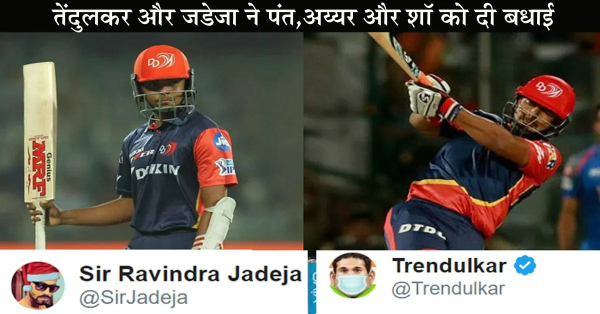 तेंदुलकर और जडेजा ने पंत,अय्यर और शॉ की शानदार पारी देखकर कुछ इस अंदाज़ में दी बधाई
