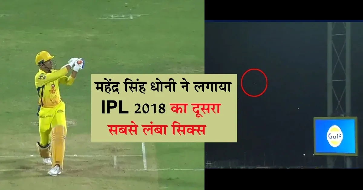 IPL 2018 का दूसरा सबसे लंबा सिक्स मारा एम एस धोनी ने, बॉल इतने मीटर दूर जाकर गिरी