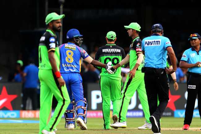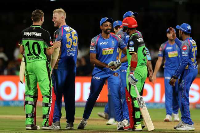 राजस्थान ने बैंगलोर को निर्धारित 20 ओवर में छह विकेट पर 198 रनों पर रोक दिया। मेजबान टीम के लिए कप्तान विराट कोहली ने सर्वाधिक 57 रन बनाए।