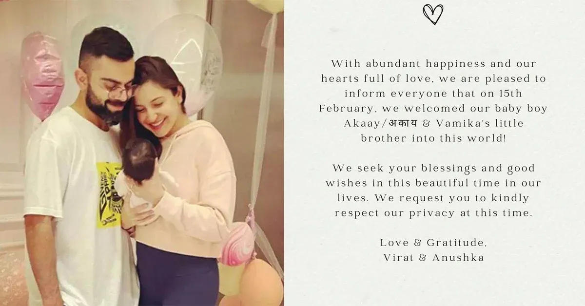 Virat Kohli के घर आया नन्हा मेहमान, नाम रखा अकाय