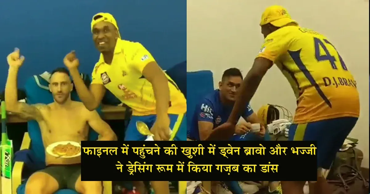VIDEO: जीत के बाद ड्वेन ब्रावो और भज्जी ने किया ड्रेसिंग रूम में गज़ब का डांस