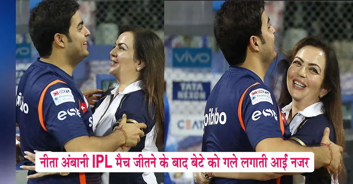 IPL 2018 : पंजाब के खिलाफ मुंबई की जीत के बाद बेटे को गले लगाती दिखीं नीता अंबानी