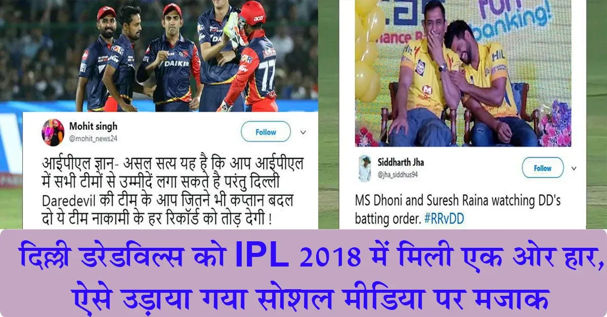 IPL 2018: दिल्ली की टीम को राजस्थान से मिली करारी हार तो सोशल मीडिया पर इस तरह उड़ा मजाक